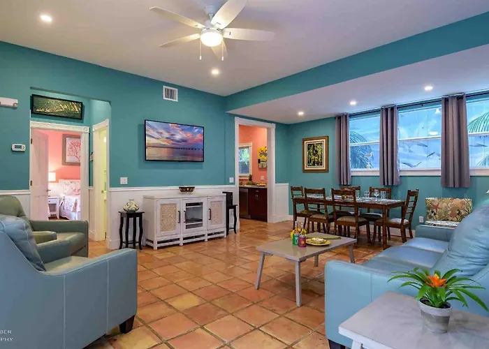 El Summer Solstice By Last Key Realty te ofrece una experiencia inolvidable en el vibrante corazón de Duval. Este encantador alojamiento cuenta con un ambiente acogedor y sofisticado, donde los sillones de cuero y los candelabros brillantes crean un ambiente perfecto para relajarte. Aquí, cada rincón está cuidadosamente decorado para brindarte confort y estilo al mismo tiempo. Sumérgete en la esencia de Cayo Hueso en el Summer Solstice By Last Key Realty, donde confort, sabor y atención se unen para crear momentos únicos en tus vacaciones.